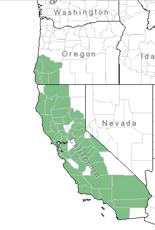 | Hastings Natural History Reservation, San Lucia Range, Monterey County | 860 to 3,600 feet (262-1,050 m) [61] |