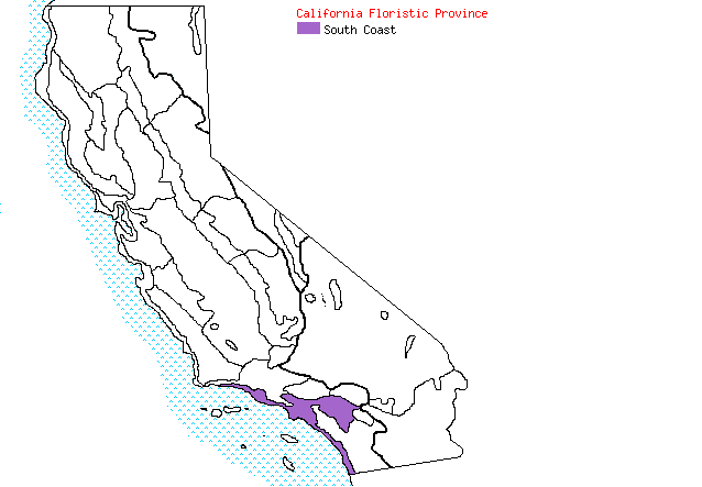 Coastal sage scrub oak is a narrow endemic; it is restricted to a portion of the South Coast Ranges of California [52,79]. The Flora of North America [52] restricts coastal sage scrub oak's geographical range to a narrow band that occurs at low elevations and is "almost always within sight of the ocean". The largest population occurs in Torrey Pines State Park, San Diego County [160].