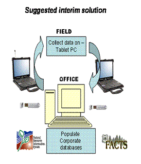 From discussions with the proposers we understood that the ideal Table PC should be: 1) simple to use, 2) light weight, 3) easy to read (i.e., have a screen large enough to accommodate fairly wide spreadsheet) and readable in bright sunlight, 4) able to support software that allows for the capture of both GIS data (e.g., ArcMap/ArcPad) and digital photos, 5) semi-ruggedized, at least, and 6) wireless as much as possible (i.e., supports wireless keypad, mouse, GPS device, etc.) To determine the feasibility of using a Tablet PC as a tool to collect invasive plant data, SDTDC began an investigation of the following sequence: 1. Loading the desktop versions of NRIS – TESP/IS (Threatened, Endangered, Sensitive Plants/Invasive Species) onto a Tablet PC. 2. Downloading invasive plant species data from corporate database (i.e., I-Web) onto desktop PC, then transfer data to Tablet PC (via removable media - CDs, jump drives, etc...). 3. Using Tablet PC in field to collect new invasive species data. 4. Transferring new field-collected data from Tablet PC back to desktop PC (again using removable media - CDs, jump drives). 5. Uploading the field-collected data from desktop PC into the corporate database.