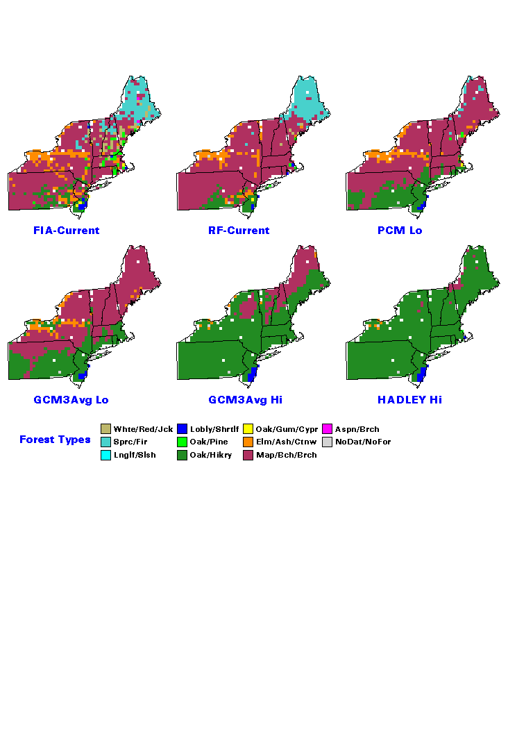 Here, we present the harshest scenario (Hadley Hi) & the mildest scenario (PCM Lo) ; as well as the average of all the three GCM models (Hadley, PCM & GFDL) for the high carbon and low carbon scenarios.