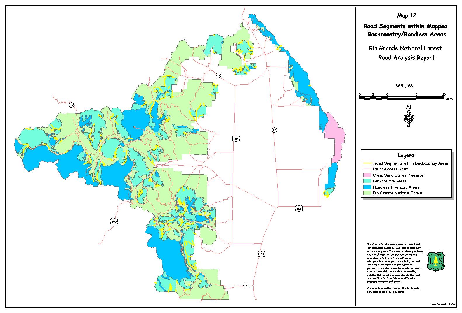 - Map 12 - Road Segments within Mapped Backcountry/Roadless Areas
