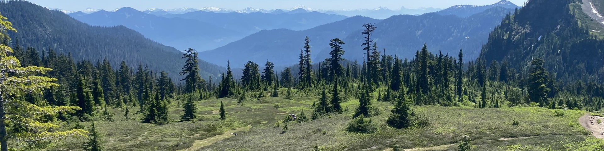 Start in the Mt. Baker National Recreation Area and quickly enter the lush Schriebers Meadow. The Scott Paul Trail junction is about 100 feet from the trailhead on the right. Continue past the junction and wander through waist-high huckleberries and the heather of Schriebers Meadow. This trail section has views of Survey Point to the east and is a great two-mile round trip for families.