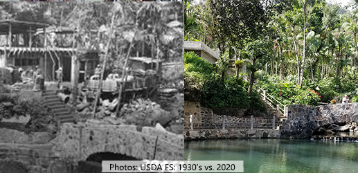 Interesting fact: In order to bring more clientele to the restaurant, this site it was the only concession that was allowed to sell hard liquor in a forest reserve in the United States. Consumption of rum in the forest was key for its popularity.