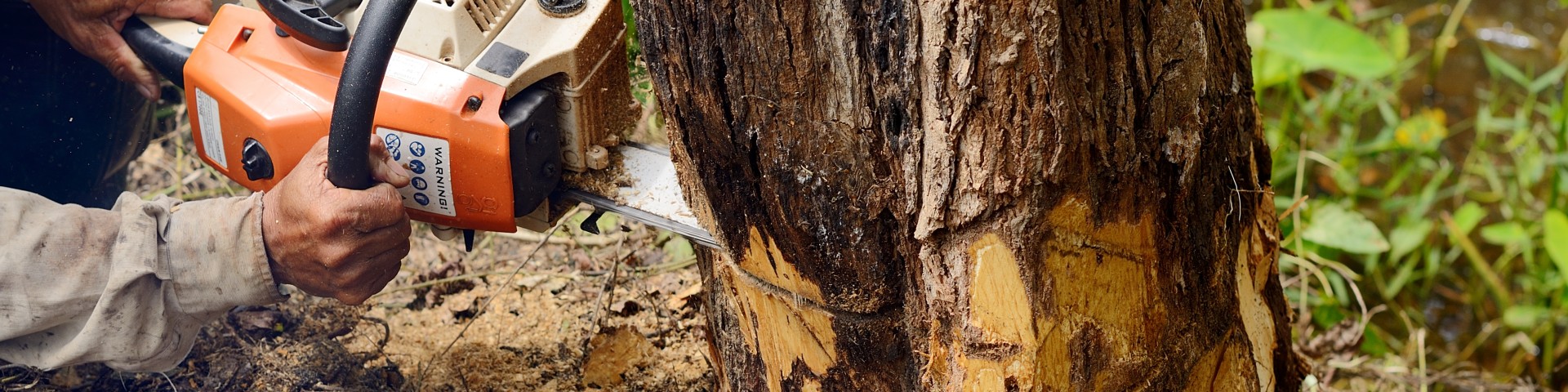 We only allow the cutting and removal of dead trees. Dead trees have no live branches and have lost at least 25% of their bark. Wind thrown and down trees must also meet this criteria.