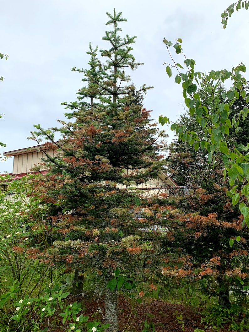 (USDA Forest Service photo.)Balsam woolly adelgid was found infesting ornamental true fir in Juneau, AK in 2019, which was the first known detection in Alaska. The City and Borough of Juneau moved quickly to remove all 36 true fir on city property and destroy the infested material. Several infested trees remain on private properties in Juneau. The Alaska Division of Forestry is developing a cost-share program to assist Juneau home and business owners with removal of infested trees.