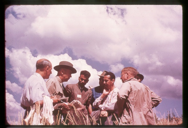 | Description: | Person showing damaged leaders on conifer seedlings |
