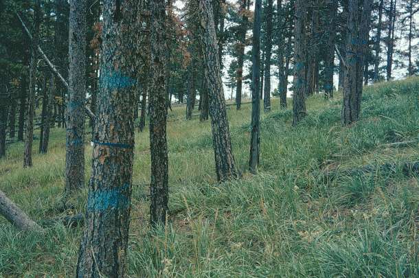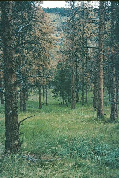 | Description: | Grass under ponderosa pine killed by mtn. pine beetle in 1970. CP 15 |
