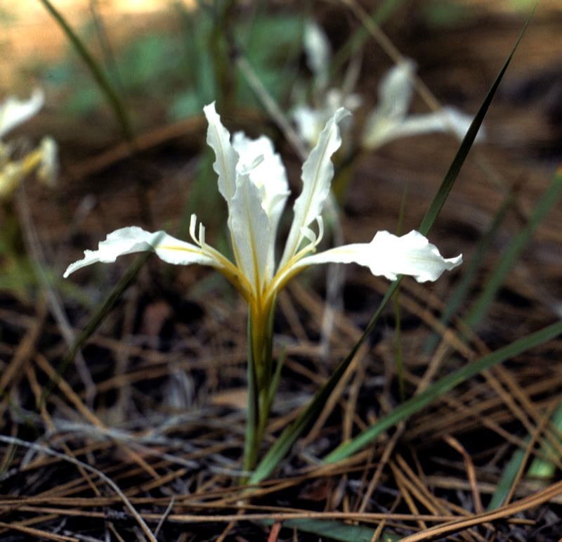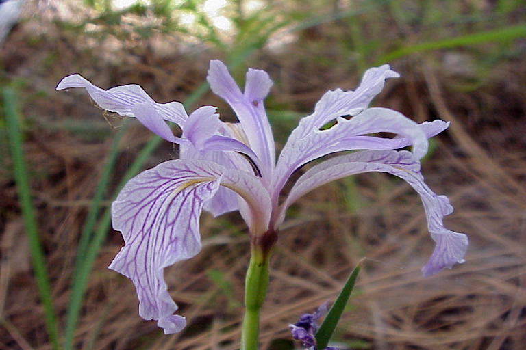 In this image of subspecies pinetorum, we see that it is aptly named as the ground is covered with pine needles. Photo by Carol Wilson, The Genus Iris.